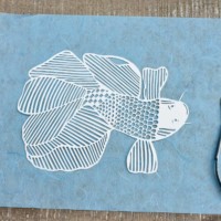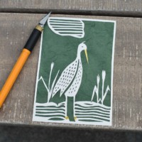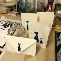 Mit Linolfarbe und einer Walze wird das Motiv dann auf Papier gedruckt, das Trocknen dauert dann noch einige Tage bis die Karte dann gefaltet und fertiggestellt werden kann.