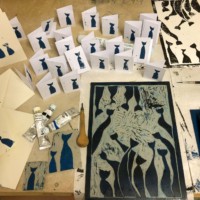 Linoldrucke sind am Aufwändigsten, denn dazu muss erst das Motiv aus einer Linolplatte geschnitzt werden.